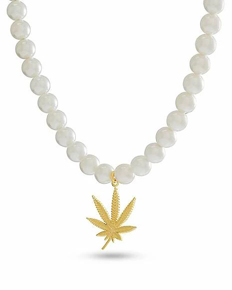 Cheapest π Pearl-Effect Goldplated Weed Leaf Necklace π