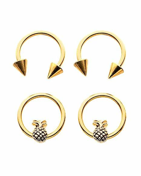 Best deal β€οΈ Pineapple Horseshoe Rings 4 Pack – 16 Gauge π