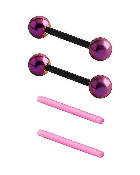 Coupon π― Pink and Black Nipple Barbells with Extra Pins – 14 Gauge π