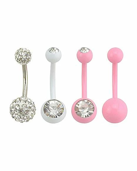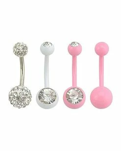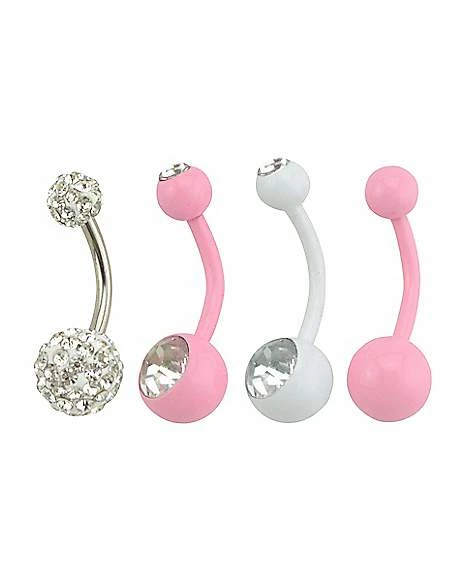 Cheapest π₯ Pink and Silver CZ Belly Ring 4 Pack – 14 Gauge π