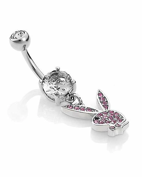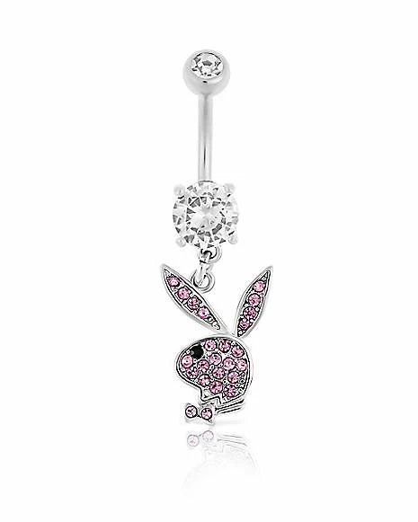 Best Sale ❤️ Pink CZ Playboy Bunny Dangle Belly Ring – 14 Gauge 🥰