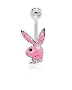 Best Pirce π₯° Pink Glitter CZ Playboy Bunny Belly Ring – 14 Gauge π