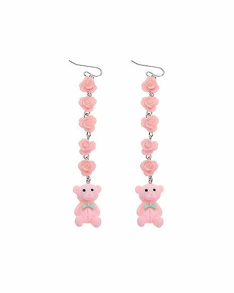Flash Sale π₯° Pink Rose Teddy Bear Dangle Earrings π₯
