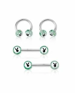 Flash Sale 𧨠Playboy Bunny Green Nipple Horseshoe Rings and Barbells Set – 14 Gauge π