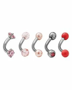 Flash Sale π Multi-Pack Pink White and Silvertone Belly Rings 5 Pack – 14 Gauge π