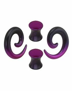 Best Sale ⭐ Multi-Pack Pink Ombre Spiral Tapers and Black Plugs – 2 Pair 🔥