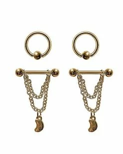Budget ❤️ Multi-Pack Black and Gold Ombre Nipple Captive Rings and Barbells 2 Pair – 14 Gauge 🥰
