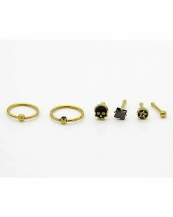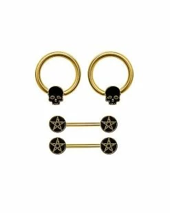 New 👏 Multi-Pack Goldtone Skull and Pentagram Captive and Barbell Nipple Rings 4 Pack – 14 Gauge 🤩