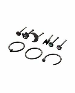 Budget 🛒 Multi-Pack CZ Cat Moon Nose Rings 9 Pack – 20 Gauge 😀
