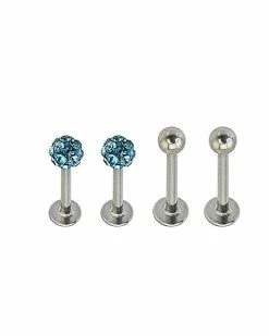 Brand new 😀 Multi-Pack Silvertone and Blue Labret Lip Rings 4 Pack – 16 Gauge 🥰