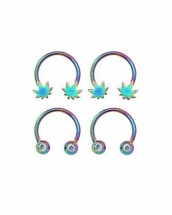 Cheapest 🎁 Multi-Pack Oil Slick Mushroom Horseshoe Rings and Captive Rings 2 Pair – 16 Gauge ✨