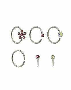 New 🔔 Multi-Pack CZ Pink and White Horseshoe Rings and Captive Rings 3 Pair – 16 Gauge 🧨