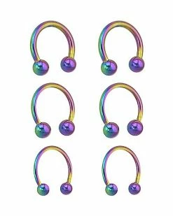 Deals ✨ Multi-Pack Rainbow Ombre Horseshoe Rings 4 Pack – 16 Gauge 😍