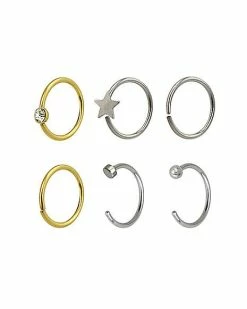 Best Sale ⭐ Multi-Pack Titanium Silvertone and Goldtone Seamless Hoop Nose Rings 6 Pack – 20 Gauge 🌟