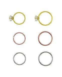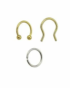 Cheap 🎁 Multi-Pack Rose Goldtone Goldtone and Silvertone Hoop Nose Rings 9 Pack – 18 Gauge ⭐