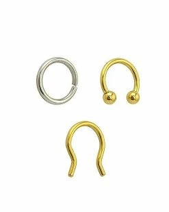 Outlet 🔥 Multi-Pack Goldtone Rose Goldtone Silvertone Captive Rings 3 Pair – 16 Gauge 😍