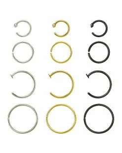 Hot Sale ✨ Multi-Pack Goldtone and Silvertone Seamless Hoop Nose Rings 12 Pack – 20 Gauge 👏