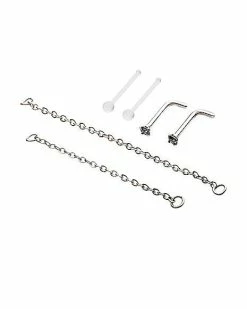 Brand new ✔️ Multi-Pack Prong Black CZ L-Bend Nose Rings and Nose Chains 2 Pair – 18 Gauge 😉