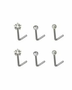 Deals 😀 Multi-Pack CZ Titanium L-Bend Nose Rings and Hoop Nose Rings 6 Pack – 20 Gauge ✔️