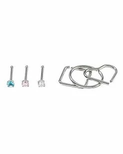 Discount 🤩 Multi-Pack CZ Shapes Nose Rings 6 Pack – 20 Gauge 🛒