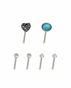 Hot Sale 👏 Multi-Pack Black Heart and Blue Stone Bone Nose Rings 6 Pack – 20 Gauge 🔥
