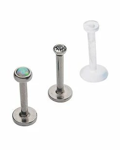 New ⌛ Multi-Pack CZ Silvertone and White Labret Lip Rings 3 Pack – 16 Gauge 😍