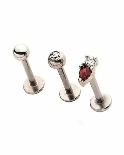 Top 10 😉 Multi-Pack Red and Clear CZ Labret Lip Rings 3 Pack – 16 Gauge 🥰