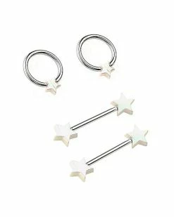 Cheapest 😍 Multi-Pack White Star Captive Rings and Nipple Barbells 2 Pair – 14 Gauge 👏