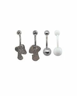 Promo 🌟 Multi-Pack Mushroom Belly Rings 4 Pack – 14 Gauge ❤️