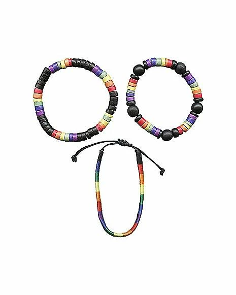 Show your pride when you wear the Rainbow Bead Bracelet 3-Pack. This package contains three different bracelets with rainbow details.