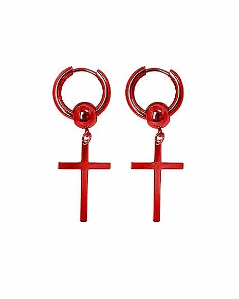 Coupon π Red Cross Huggie Dangle Earrings – 18 Gauge π₯