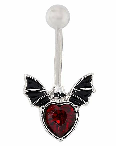 Top 10 π Red CZ Bat Heart Belly Ring – 14 Gauge π