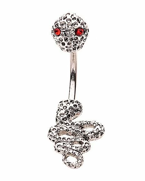 Discount 𧨠Red CZ Snake Dangle Belly Ring – 14 Gauge π