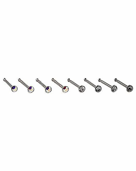 New 𧨠Reflective CZ Stud Nose Ring 8 Pack – 20 Gauge π