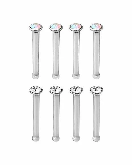 - 8 nose studs: 4 Aurora Borealis translucent, 4 translucent