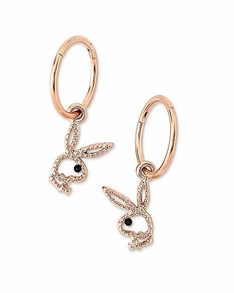 Promo β¨ Rose Gold Playboy Bunny Cutout Dangle Earrings – 18 Gauge π₯