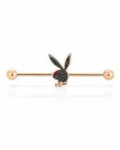 Promo π Rose Goldtone Black Glitter Playboy Bunny Industrial Barbell – 14 Gauge β€οΈ