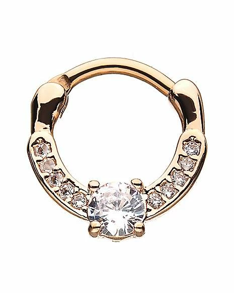 Brand new π Rose Goldtone CZ Clicker Septum Ring – 16 Gauge π