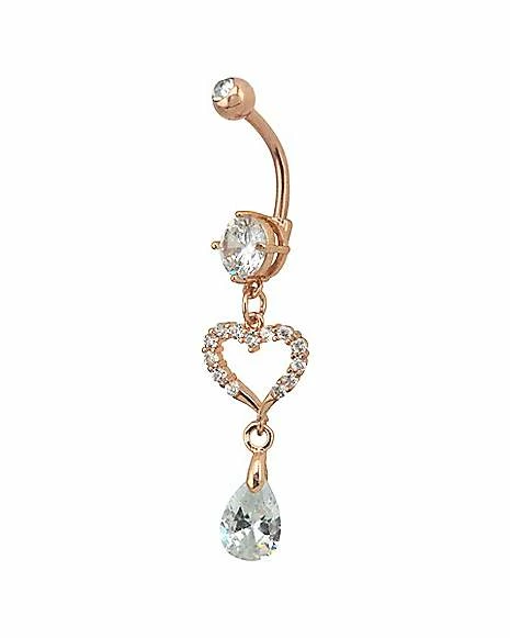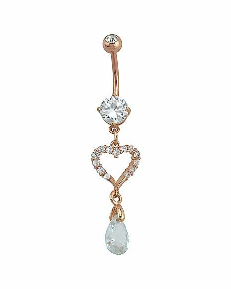 Budget π Rose Goldtone CZ Heart Dangle Belly Ring – 14 Gauge β