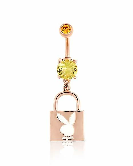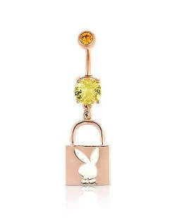 Best Pirce π Rose Goldtone Yellow CZ Playboy Bunny Lock Dangle Belly Ring – 14 Gauge π