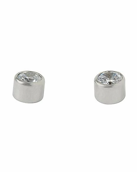 Deals βοΈ Round CZ Silvertone Titanium Stud Earrings – 20 Gauge π€©