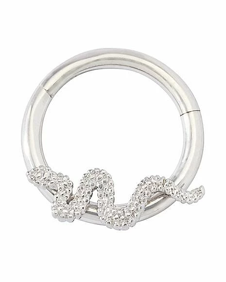 Buy π Silverplated Snake Cartilage Hinged Hoop Ring – 16 Gauge π