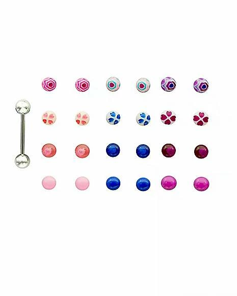 Cheap β Silvertone Barbell with 24 Multi-Colored Extra Balls – 14 Gauge π