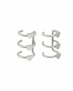 Hot Sale 𧨠Silvertone Heart Triple Bar Fake Ear Cuffs π