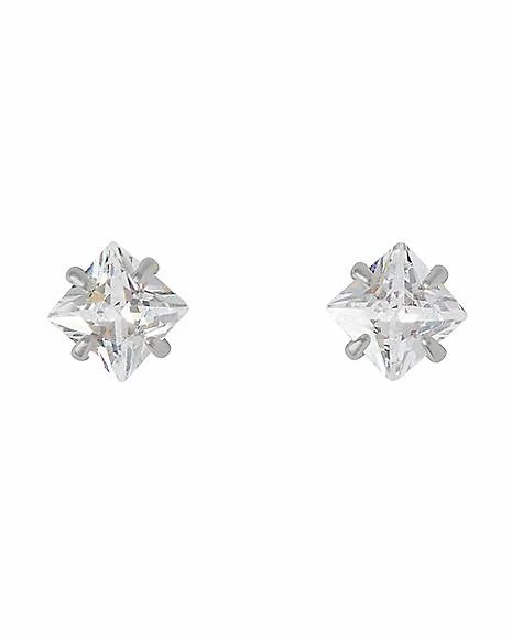 Flash Sale π Square CZ Titanium Stud Earrings – 20 Gauge β€οΈ