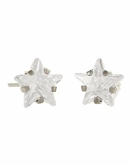 Cheap π Star CZ Silvertone Stud Earrings – 20 Gauge βοΈ