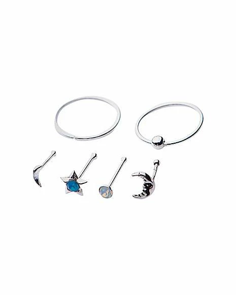 Cheapest π Sterling Silver Moon and Star Nose Rings 6 Pack – 22 Gauge β€οΈ