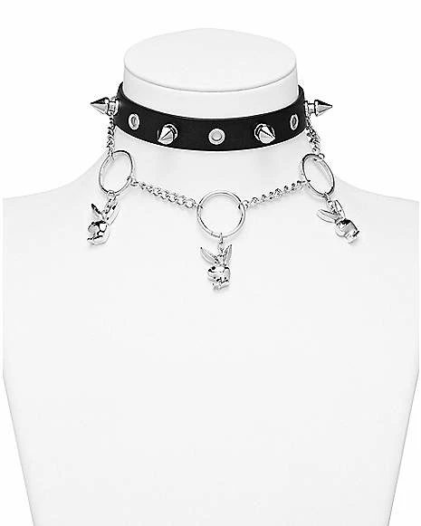 Best deal β€οΈ Studded Triple Playboy Bunny Chain Choker Necklace π§¨