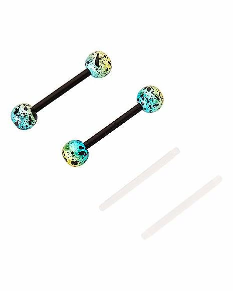 New π Teal Moon Bioflex Nipple Barbells with Extra Barbells – 14 Gauge βοΈ