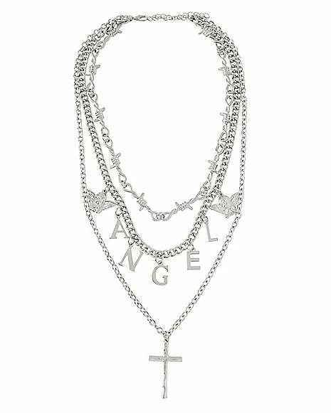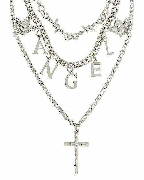 Best deal π Three Row Barbed Angel Cross Necklace π